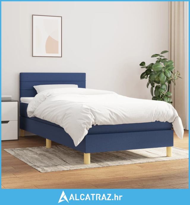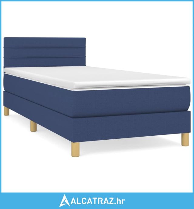 Krevet s oprugama i madracem plavi 100 x 200 cm od tkanine - NOVO