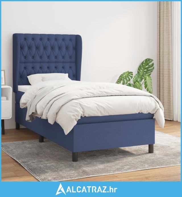 Krevet s oprugama i madracem plavi 100 x 200 cm od tkanine - NOVO