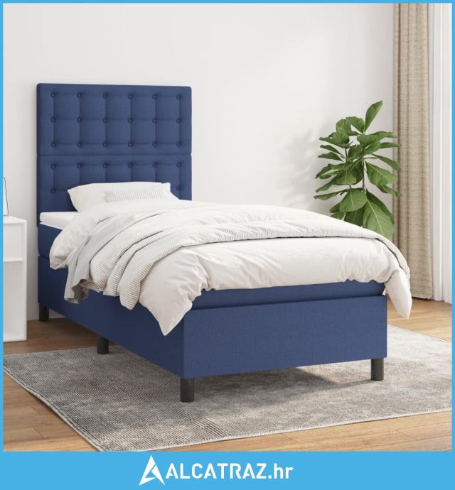 Krevet s oprugama i madracem plavi 100 x 200 cm od tkanine - NOVO
