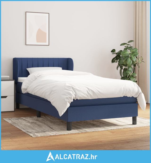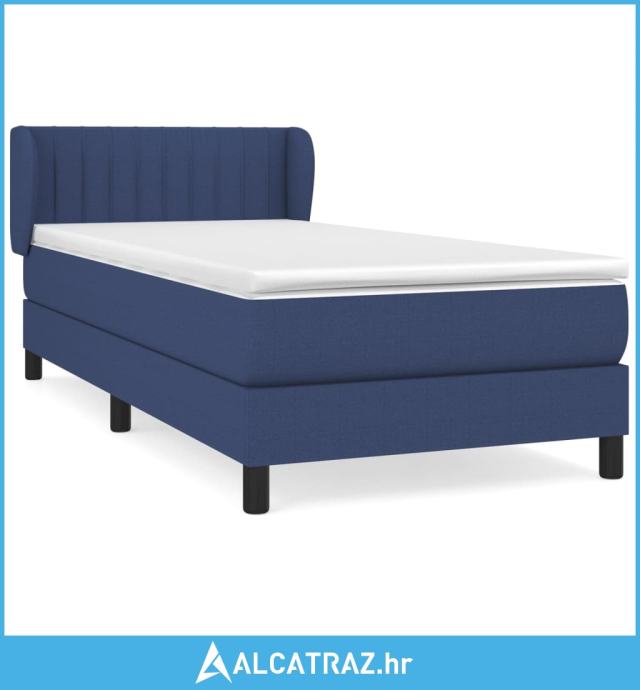 Krevet s oprugama i madracem plavi 100 x 200 cm od tkanine - NOVO