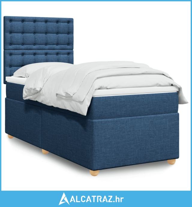 Krevet s oprugama i madracem plavi 100 x 200 cm od tkanine - NOVO