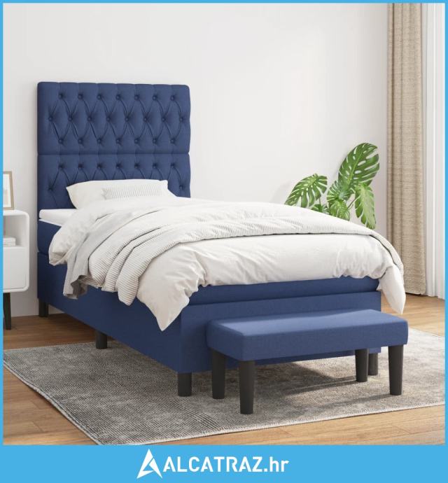 Krevet s oprugama i madracem plavi 100 x 200 cm od tkanine - NOVO