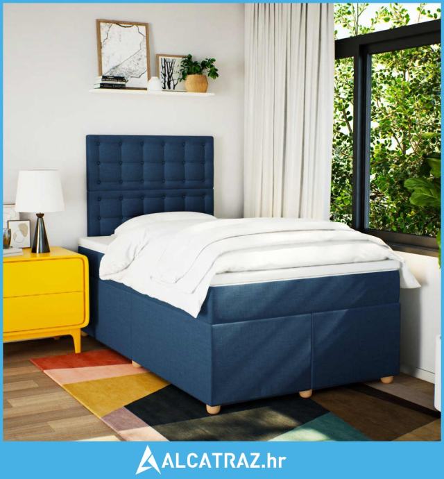 Krevet s oprugama i madracem plavi 120 x 190 cm od tkanine - NOVO