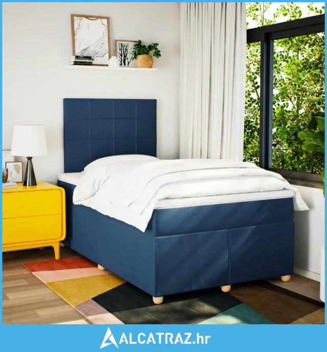 Krevet s oprugama i madracem plavi 120 x 200 cm od tkanine - NOVO