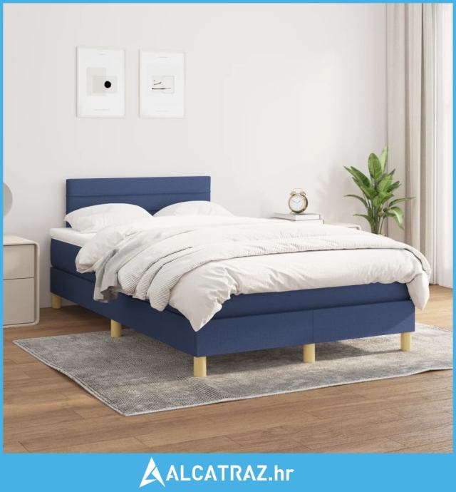 Krevet s oprugama i madracem plavi 120 x 200 cm od tkanine - NOVO