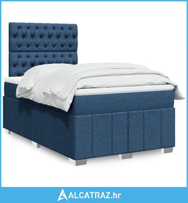 Krevet s oprugama i madracem plavi 120 x 200 cm od tkanine - NOVO