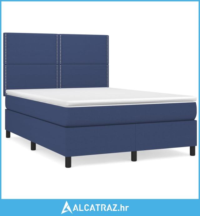 Krevet s oprugama i madracem plavi 140 x 190 cm od tkanine - NOVO