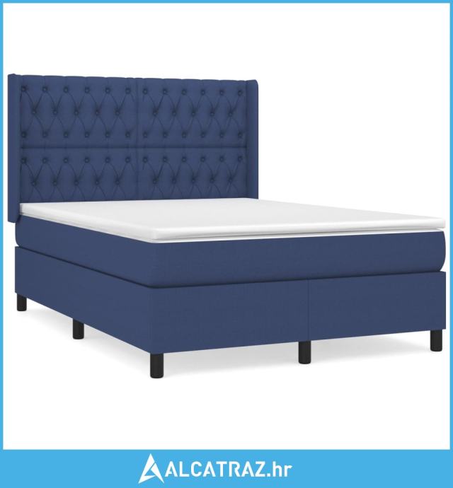 Krevet s oprugama i madracem plavi 140 x 190 cm od tkanine - NOVO