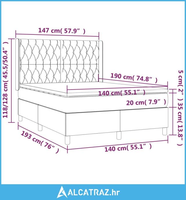 - Dimenzije: 140 x 190 x 20 cm (Š x D x V)