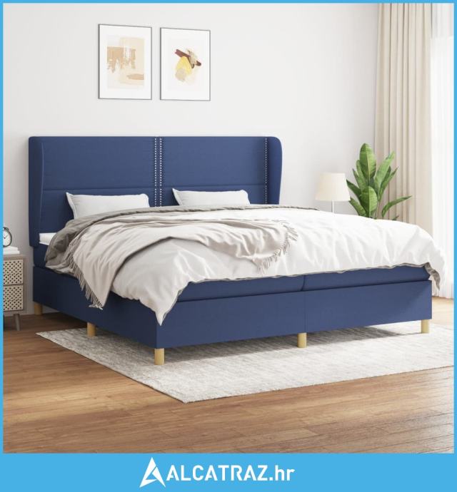 Krevet s oprugama i madracem plavi 200 x 200 cm od tkanine - NOVO