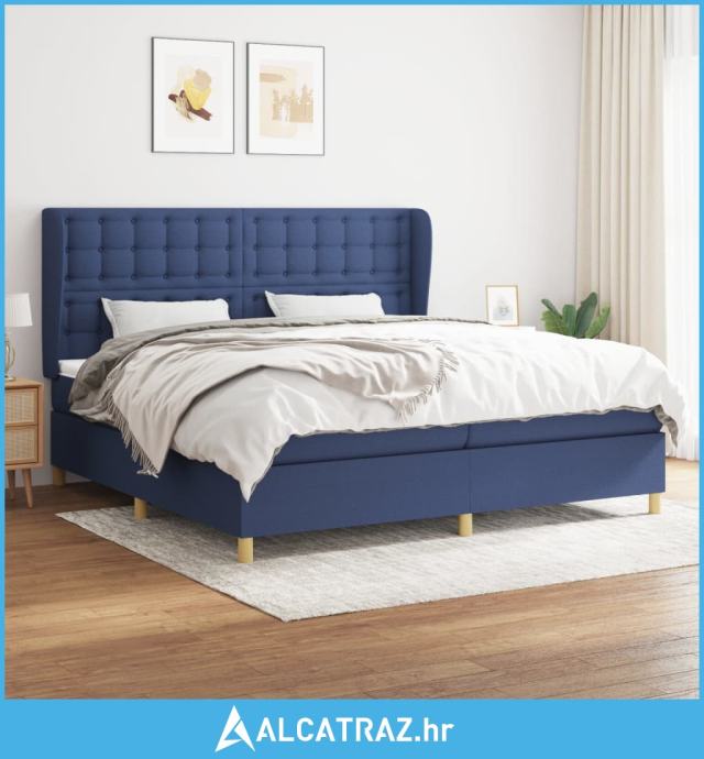 Krevet s oprugama i madracem plavi 200 x 200 cm od tkanine - NOVO