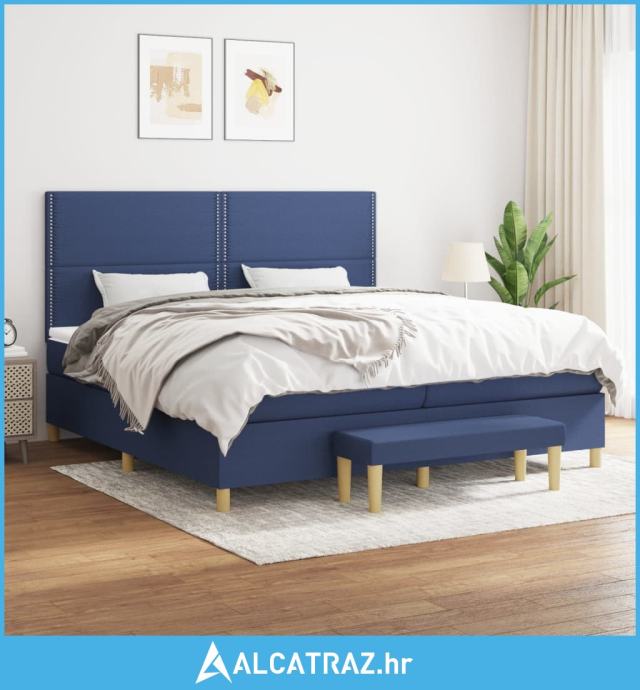 Krevet s oprugama i madracem plavi 200 x 200 cm od tkanine - NOVO