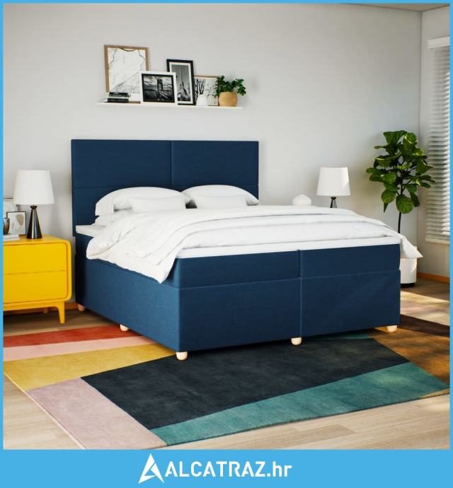 Krevet s oprugama i madracem plavi 200 x 200 cm od tkanine - NOVO