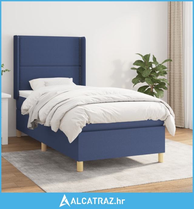 Krevet s oprugama i madracem plavi 90 x 190 cm od tkanine - NOVO