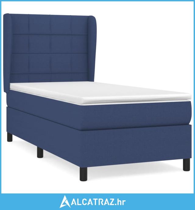 Krevet s oprugama i madracem plavi 90 x 190 cm od tkanine - NOVO