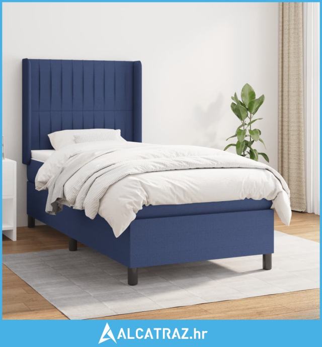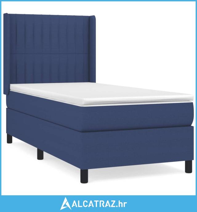 Krevet s oprugama i madracem plavi 90 x 190 cm od tkanine - NOVO