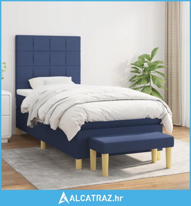 Krevet s oprugama i madracem plavi 90 x 190 cm od tkanine - NOVO