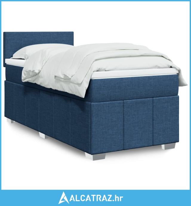 Krevet s oprugama i madracem plavi 90 x 190 cm od tkanine - NOVO