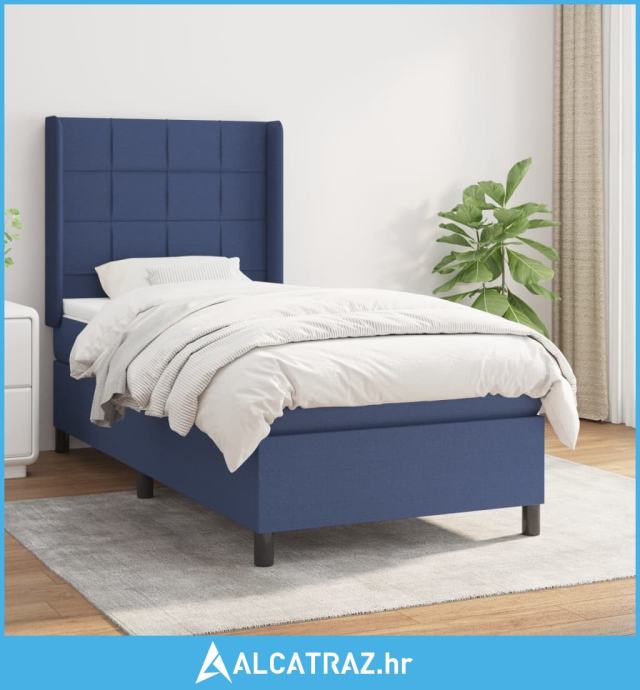 Krevet s oprugama i madracem plavi 90 x 200 cm od tkanine - NOVO