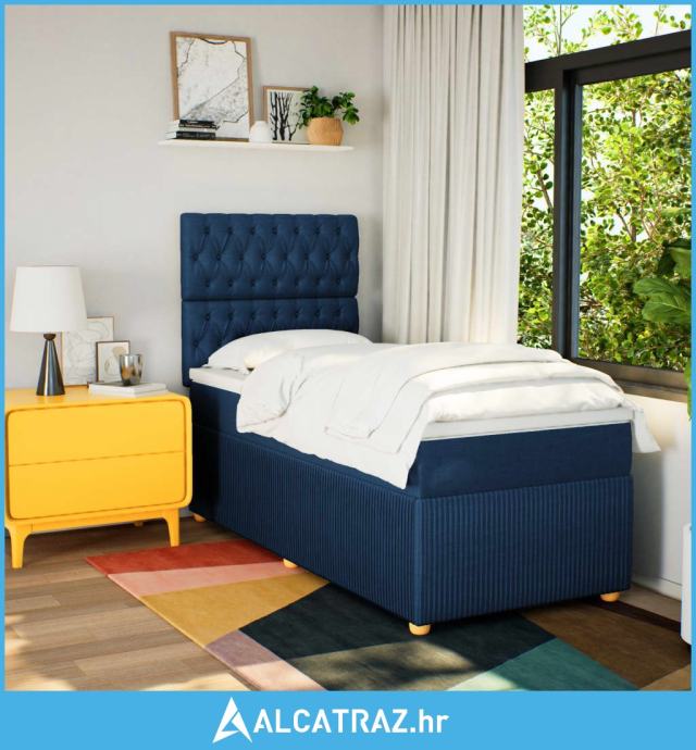 Krevet s oprugama i madracem plavi 90 x 200 cm od tkanine - NOVO
