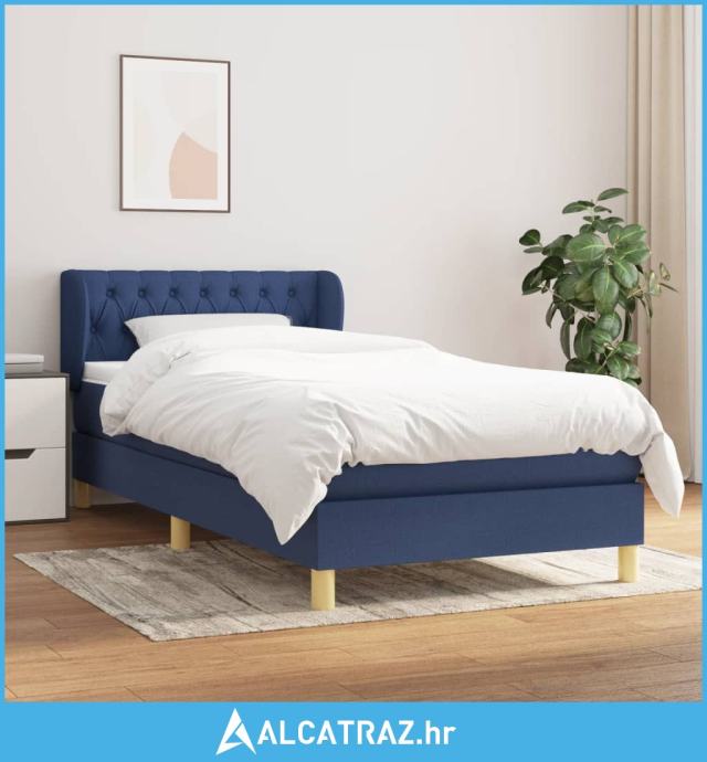 Krevet s oprugama i madracem plavi 90 x 200 cm od tkanine - NOVO