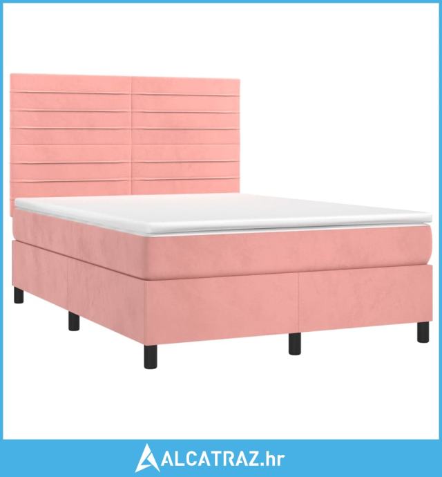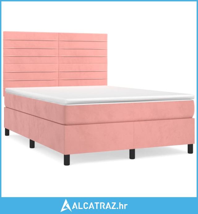 Krevet s oprugama i madracem ružičasti 140x190 cm baršunasti - NOVO