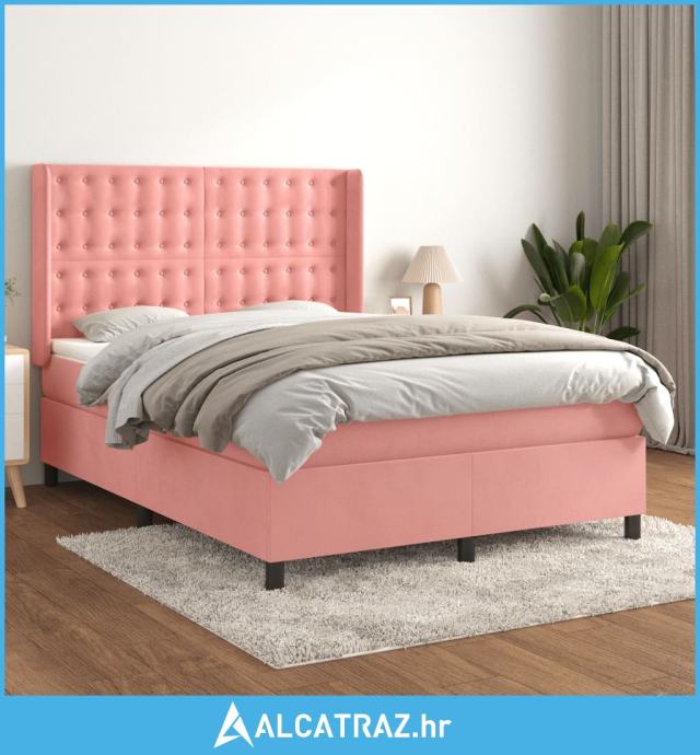 Krevet s oprugama i madracem ružičasti 140x190 cm baršunasti - NOVO