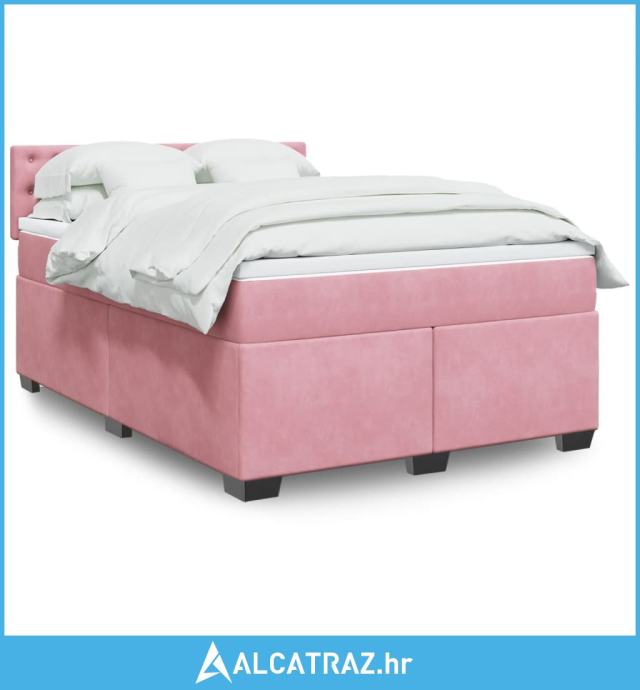 Krevet s oprugama i madracem ružičasti 140x200 cm baršunasti - NOVO