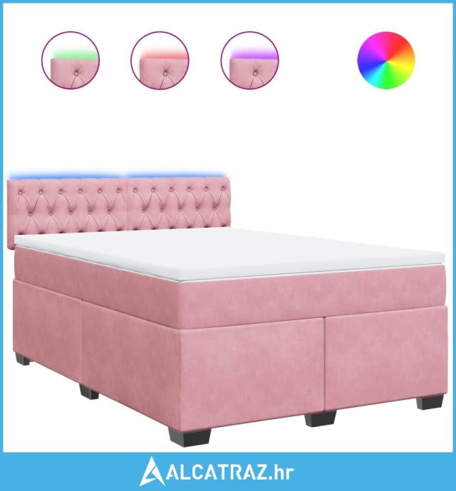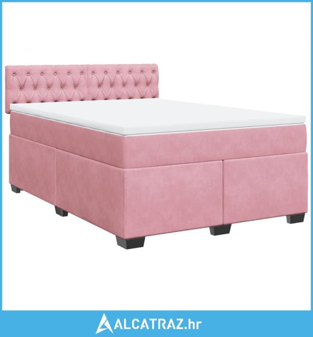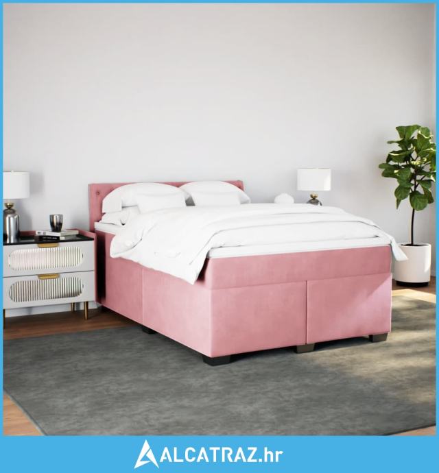 Krevet s oprugama i madracem ružičasti 160x200 cm baršunasti - NOVO