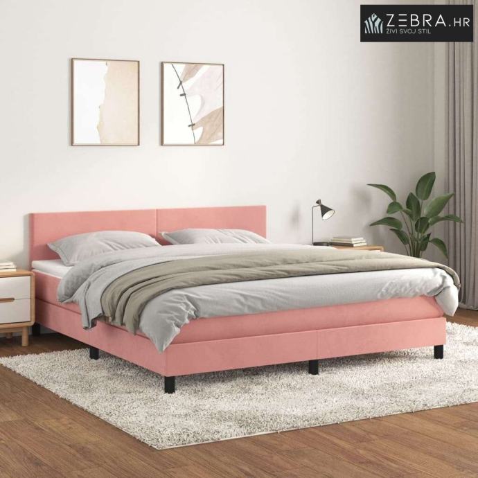 Boxspring - Krevet s oprugama i madracem ružičasti 160x200 cm baršunas