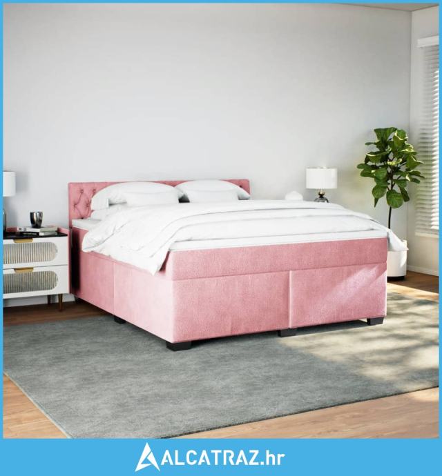 Krevet s oprugama i madracem ružičasti 180x200 cm baršunasti - NOVO