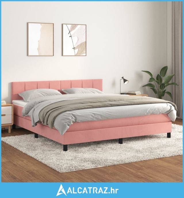 Krevet s oprugama i madracem ružičasti 180x200 cm baršunasti - NOVO