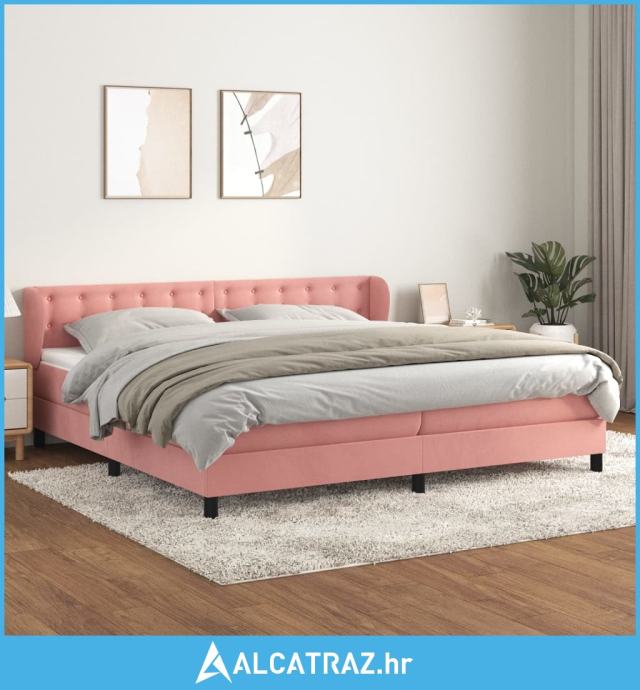 Krevet s oprugama i madracem ružičasti 200x200 cm baršunasti - NOVO