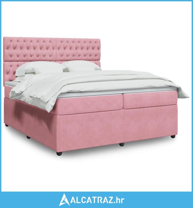 Krevet s oprugama i madracem ružičasti 200x200 cm baršunasti - NOVO