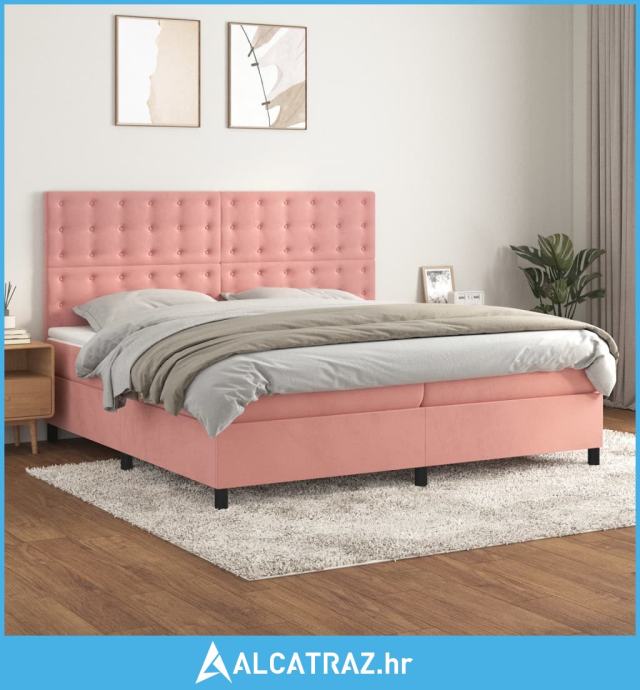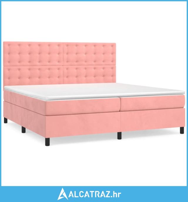 Krevet s oprugama i madracem ružičasti 200x200 cm baršunasti - NOVO