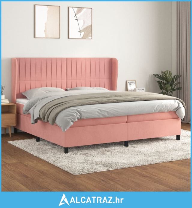 Krevet s oprugama i madracem ružičasti 200x200 cm baršunasti - NOVO