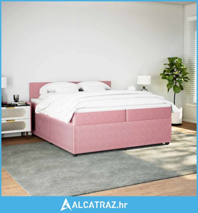 Krevet s oprugama i madracem ružičasti 200x200 cm baršunasti - NOVO
