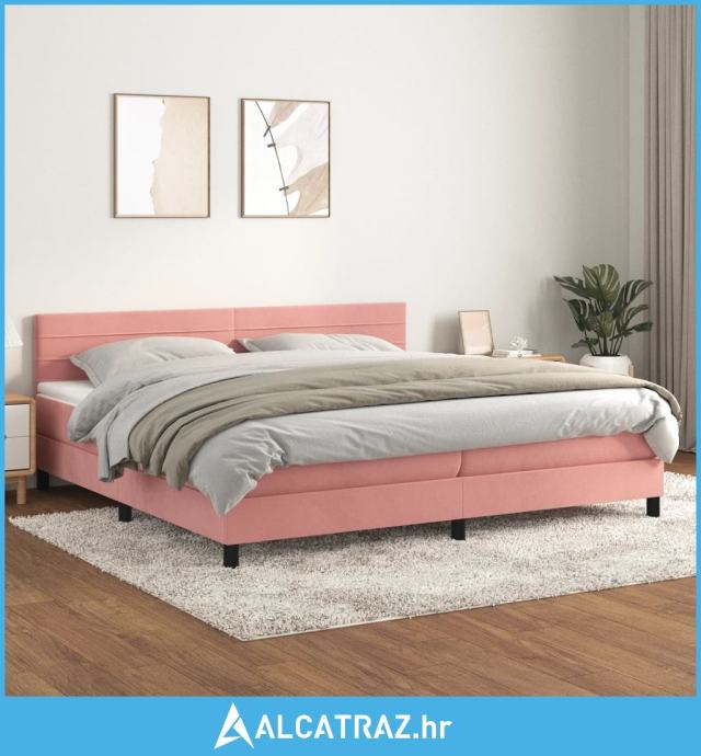 Krevet s oprugama i madracem ružičasti 200x200 cm baršunasti - NOVO