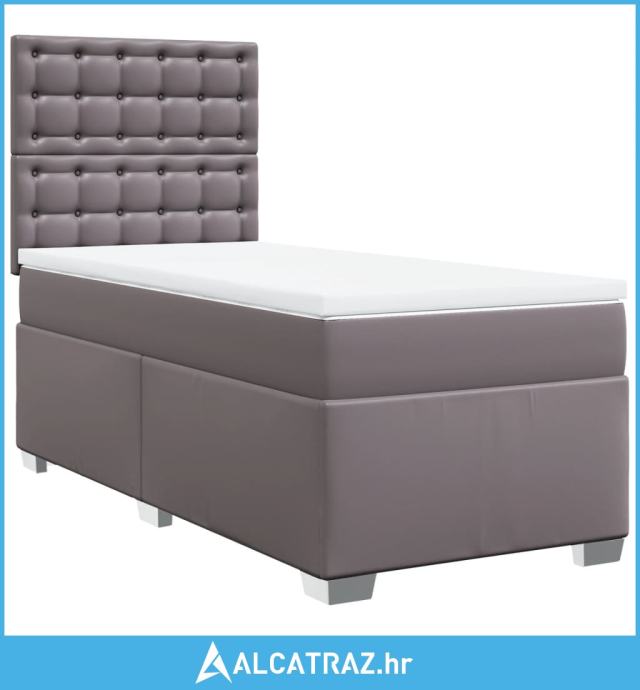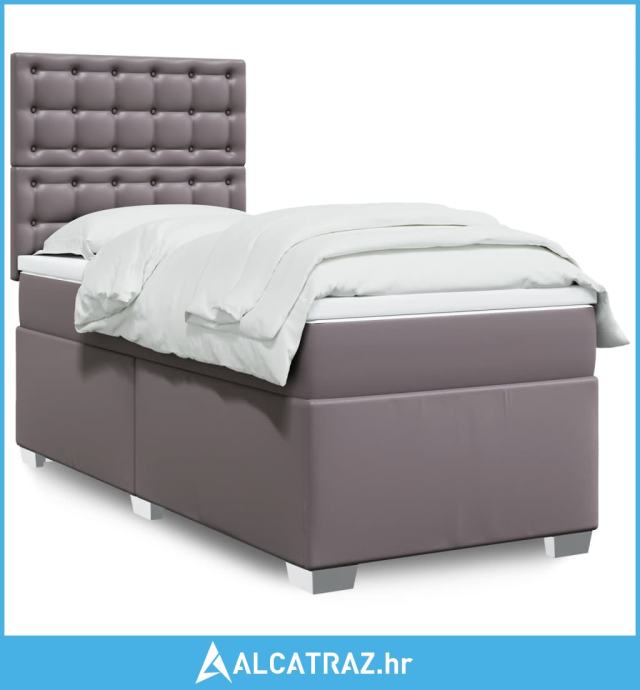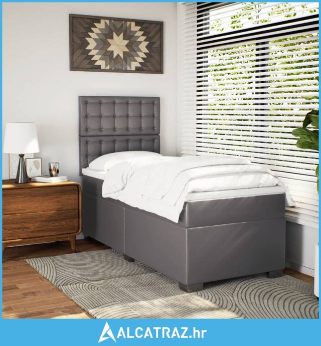 Krevet s oprugama i madracem sivi 100x200 cm od umjetne kože - NOVO