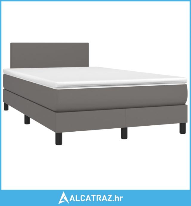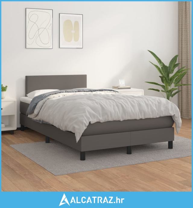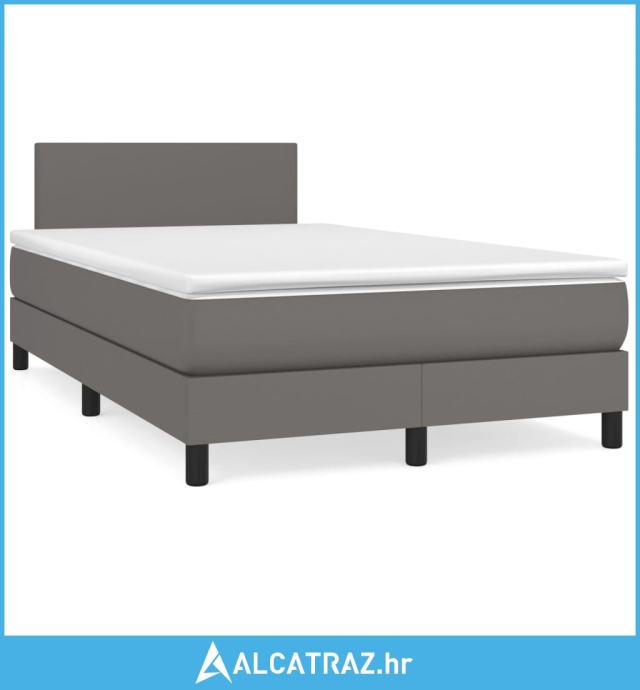 Krevet s oprugama i madracem sivi 120x200 cm od umjetne kože - NOVO