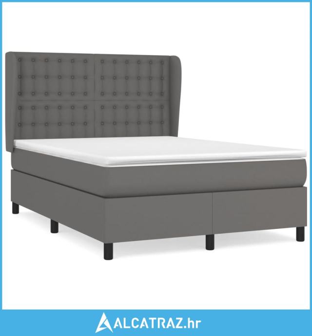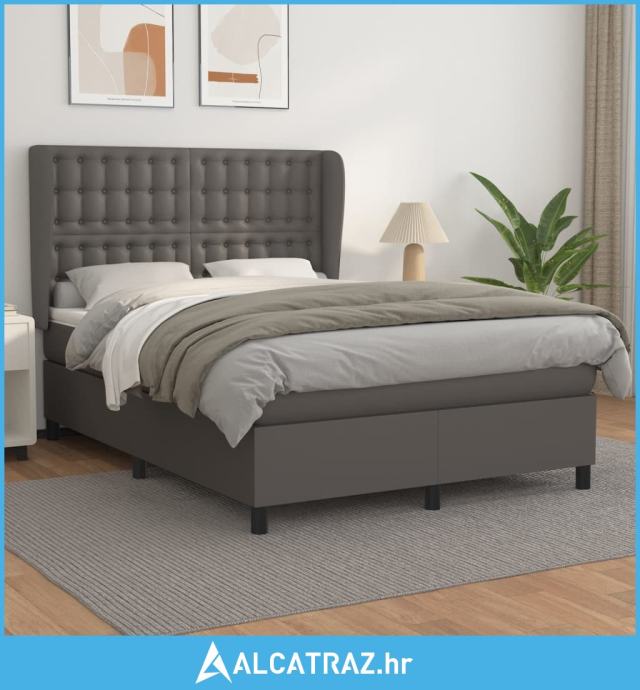 Krevet s oprugama i madracem sivi 140x190 cm od umjetne kože - NOVO