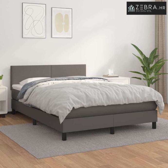 Boxspring - Krevet s oprugama i madracem sivi 140x190 cm od umjetne ko