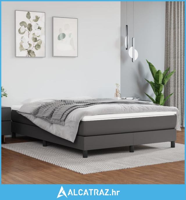 Krevet s oprugama i madracem sivi 140x200 cm od umjetne kože - NOVO
