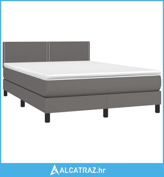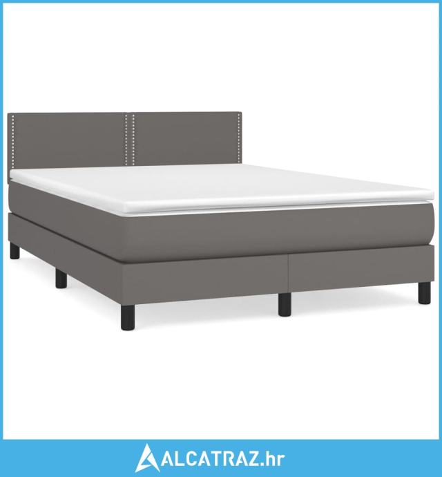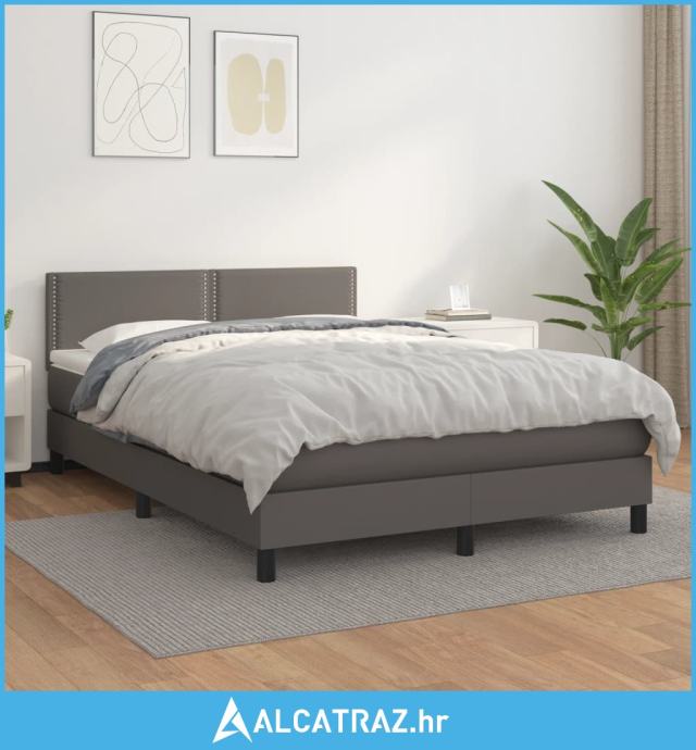 Krevet s oprugama i madracem sivi 140x200 cm od umjetne kože - NOVO
