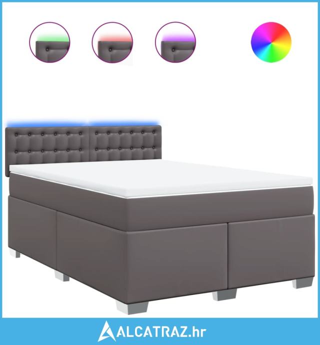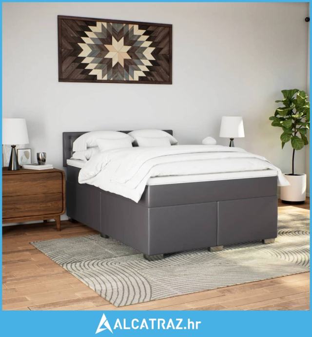 Krevet s oprugama i madracem sivi 140x200 cm od umjetne kože - NOVO