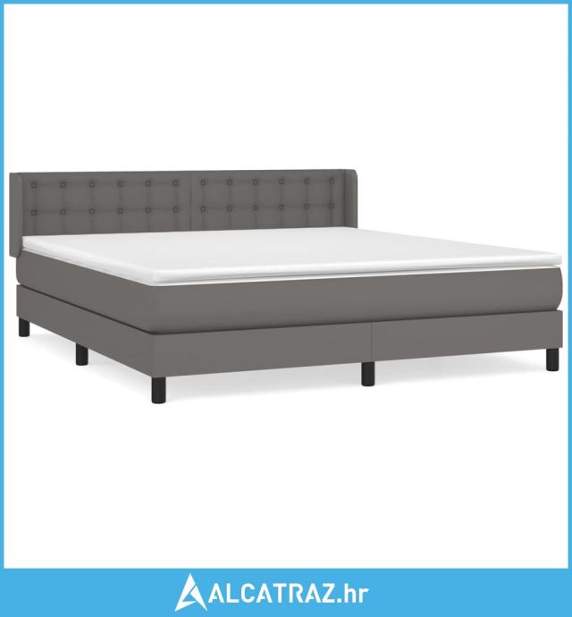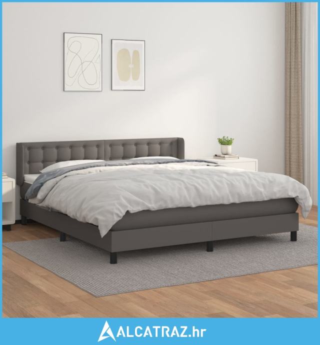 Krevet s oprugama i madracem sivi 160x200 cm od umjetne kože - NOVO