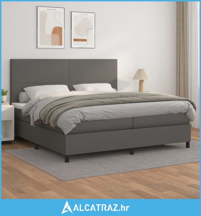 Krevet s oprugama i madracem sivi 200x200 cm od umjetne kože - NOVO