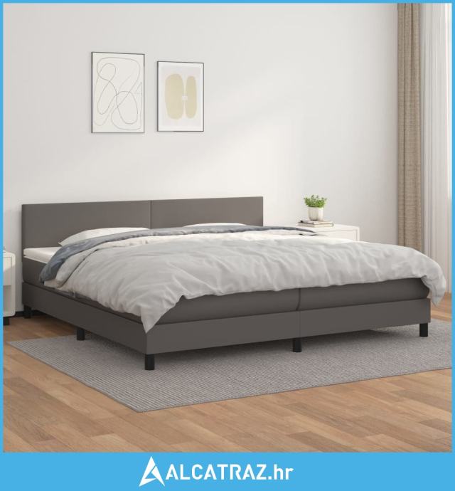 Krevet s oprugama i madracem sivi 200x200 cm od umjetne kože - NOVO