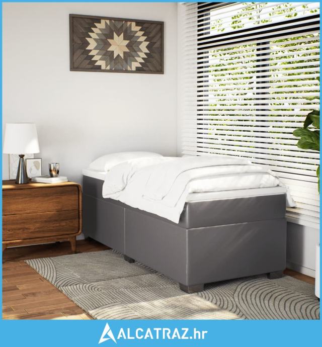 Krevet s oprugama i madracem sivi 80 x 200 cm od umjetne kože - NOVO