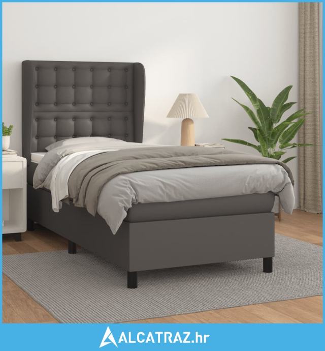 Krevet s oprugama i madracem sivi 80 x 200 cm od umjetne kože - NOVO